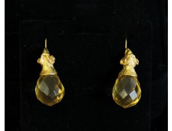 Jaded, Madison Avenue, Gold Wire Ram Head Earring with Faceted Citrine Drop