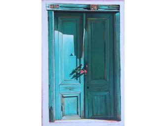 Additional Information: This unframed silkscreen by Igor Medvedev, entitled “#26,” is an example of the artist’s deep interest in the preservation of ancient towns and villages and wish to capture what he terms “Vanishing visual miracles.” Many of Medvedev’s strengths are clearly demonstrated in this wonderful work. You feel drawn into the doors with his skillful use of light and shadows. The roses on the doorknobs invite you to cross over the threshold to step inside. This piece evokes serenity and will quickly become one of the favorites in your collection.