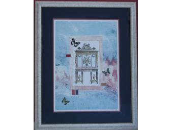 Additional Information: Incorporating delicate butterflies into his colorful depiction of a massive drawing room cabinet inspired by classical architecture, the artist presents an updated, somewhat whimsical version of a traditional print genre. This lovely silkscreen has been expertly framed with a double mat, further enhancing the beauty of the artist’s work. A companion piece is also available. This image is one-of-a-kind.