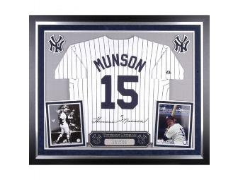 Thurman Munson New York Yankees Deluxe Framed Majestic Cooperstown Jersey