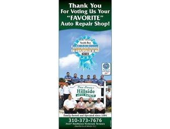 Certificate for a Deluxe Car Care Spa Package provided by Hillside Auto Repair in Torrance, includes: