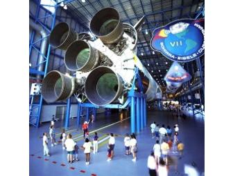 Kennedy Space Center Visitor Complex Admission for (4) - Tour Kennedy Space Center, view ten-story high rockets from all eras of space exploration in the Rocket Garden, walk through a full-size Space Shuttle mock-up, see IMAX® space films on gigantic five-story screens, and see an actual Gemini program capsule on display in Early Space Exploration. Visit includes the U.S. Astronaut Hall of Fame with interactive space-flight simulators.