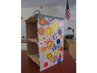 Beautifully crafted night-stand sized bookcase. This book case was artfully decorated by the students in Mrs. Dupont's First Grade Class. A stunning addition to any child's room or playroom....