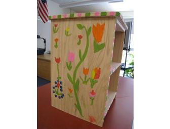 Beautifully crafted night-stand sized bookcase. This book case was artfully decorated by the students in Mrs. Scibek's First Grade Class. A stunning addition to any child's room or playroom....