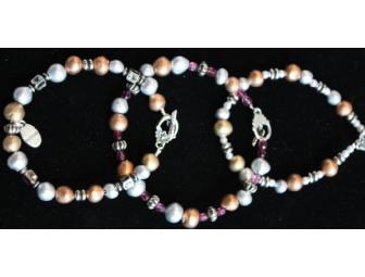 This 3 piece set is handmade with gold and silver seed beads and accented with sterling silver and glass beads. A great accessory to any outfit.