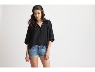 Win a beautiful CLASSIC TUCKER BLACK HAMMER SILK BLOUSE by FASHION DESIGNER GABY BASORA!