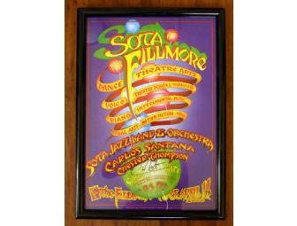 Brightly colored, framed poster from April 11, 2000 Sota at the Fillmore concert with special guests Carlos Santana and Chester Thompson. Signed by Carlos Santana.