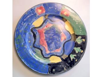 Beautiful 13" diameter platter decorated by the third grade class, encouraged by local ceramist Michael Wainwright. Food safe, dishwasher safe.