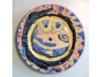Beautiful 13" diameter platter decorated by the third grade class, encouraged by local ceramist Michael Wainwright. Food safe, dishwasher safe.