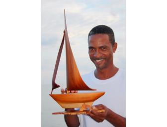 About the Artist: Robert Wright is an accomplished artist living in Treasure Beach, Jamaica—a small fishing village on the South Coast of Jamaica; he has had a love of boats and boating all his life. He was born in Jamaica but learned his carpentry and boat-building skills working first in the Cayman Islands, then in Anguilla. His interest in wood as an artistic medium spans three decades, and he is renowned for his meticulous and inspirational approach to breathing life and movement into the inanimate wood form. He currently combines his passion for woodcarving with that of gardening—and is also a respected garden designer.