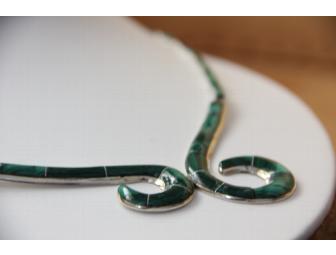 Treat yourself or the special someone in your life to this beautiful handmade necklace from Mexico. Made of Malachite over Silver.