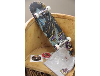 Your very own Lair Dragon skateboard by Golden Dragon whose complete skateboards provide a high quality at an entry level price. They are the perfect first skateboard for beginners and a smart choice for price conscious advanced skaters. Powell Peralta Cab Dragon II t-shirt, size small and assorted skate stickers are an added bonus!