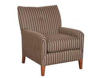 Lounge Chair with a button back, loose seat and exposed wood leg with matching ottoman