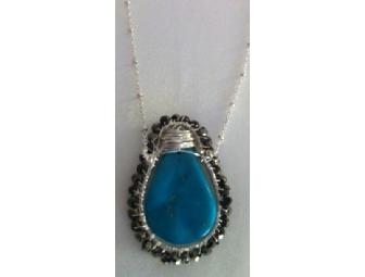 Zella Necklace in Sterling silver and Mexican turquoise & Pyrite