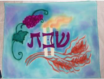 From artist Nancy S. Kraus, bid now for this beautiful, one-of-a-kind hand dyed silk challah cover.