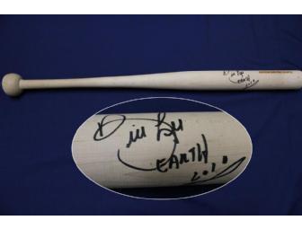 Wooden baseball bat signed by Bill Lee. The zany Lee added the inscription "EARTH 2010" as well.