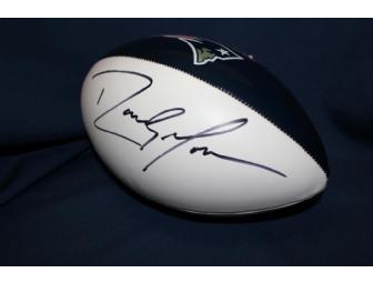 This is a New England Patriots football that has been autographed by Randy Moss.