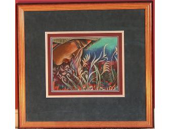Additional Information: With its mystical, dreamlike quality, this exquisitely rendered work of art leaves much to the viewer’s own imagination. It portrays a beautiful young woman mesmerized by the sight of a vibrant tropical seascape filled with exotic life forms. This fascinating piece of art has been expertly matted and framed, dramatically enhancing the impact of this imaginative artist’s work.