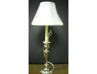 24" Colonial-style candlestick table lamp with silver plate base and fluted lampshade from Market Square.
