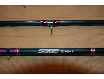 NEW OPENING BID! You are bidding on a custom-made Sage VT2 9’6” 4-piece 6-wt. fly rod. The guides are wrapped in purple and pink size A thread. The rod tube has the full CFR Logo engraved on it. The butt cap (end of the rod) has the CFR logo engraved on it.