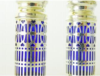 Antique Cobalt and Silver Salt and Pepper Shakers