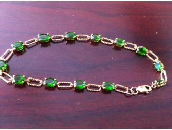 This bracelet is a delicate piece, perfect for the delicate one in your life. It measures seven inches and is 10K gold with Diopside stones.
