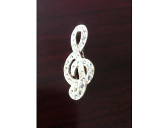 This rhinestone music note brooch will be a great addition to the collection of any musician in your life. It could even be used as a tie pin as it measures about 13/4 inches high.