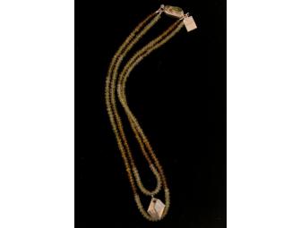 Two strand green garnet necklace with swarovski crystal drop, sterling and peridot clasp. One-of-a-kind piece from a DC Designer!