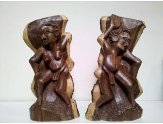 Two wooden African sculptures from Mozambique made from sandalwood.