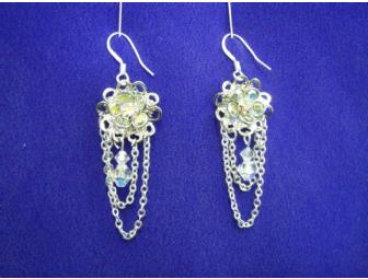 Enchanting filigree daisy earrings composed of silver-plated pewter and steel with Swarovski® clear AB crystal. These handmade floral chain earrings are a perfect fit for any occasion. The floral shape is intricate and perfectly captures light creating an illumination of colors.