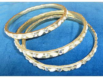 Set of three bangle bracelets by Leslie Danzis set with ivory and cream colored turquoise stones and rhinestones.