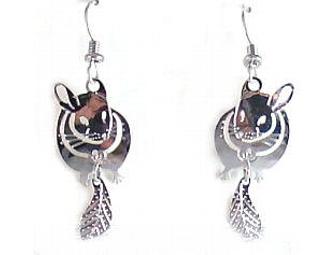 These beautiful earrings are made of recycled brass and are rhodium plated. The chinchillas measure 1" long and have swinging tails. Wire hook earrings for pierced ears. Made by Wild Byrde.