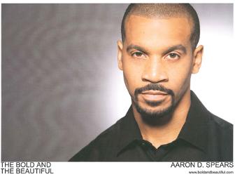 Aaron D. Spears stars as "Justin Barber", the executive vice president of Spencer Publications, long-time friend and right-hand-man to the companyÕs President, Bill Spencer, Jr. (played by Don Diamont) on CBS' "Bold and the Beautiful." Spears has appeared in guest starring roles on numerous television shows such as "Boston Legal," "Lincoln Heights," "Bones," and "Criminal Minds." Spears autographed size 11, used, Athletic Works in white and black.