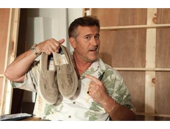American actor, producer, writer, and director. Bruce Campbell is most famous for his starring roles in cult films like The Evil Dead, Evil Dead II, Crimewave, Army of Darkness, Maniac Cop, Bubba Ho-tep, Escape From L.A. and Sundown: The Vampire in Retreat. He is currently starring as Sam Axe in TV series Burn Notice on the USA Network. He autographed 10 1/2 Sperry Top-Sider from the set of Burn Notice; beige suede shoes with handwritten sayings, "Wear me out!" and "Slip This On!"