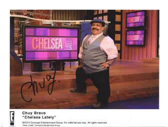 Chelsea Handler's assistant, Chuy Bravo (born Jesus Melgoza) who sits across from the round table, often interviewing the studio audience and participating alongside Handler in video segments for the Chelsea Lately show. Chuy autographed 4 youth used silver Creative Recreation tennis shoes.