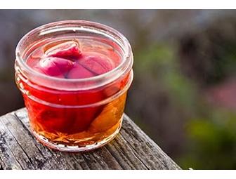 A Mo Foods Gift Basket! A collection of seasonal, small-batch, artisanal deliciousness! Sourced from local backyard produce, likely to include spicy pickled oranges, preserved meyer lemons, artisanal limoncello, and more.