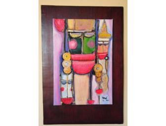 This strikingly colorful depiction of Angkor carvings is painted on canvas measuring 14" x 20.5" and mounted on dark stained 1/4" plywood measuring 20" x 29". It was signed and dated (2007) by the artist, Mr. Asasax, and purchased from him in his Phnom Penh gallery.