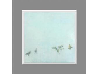 Custom framed Theresa Handy painting called "Seagulls." Floater framed and printed on canvas.