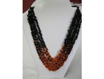 Dramatic Coral multi strand necklace. Black and deep orange colors.