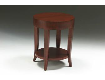Featuring a veneered top with sculptured solid wood legs that seamlessly join the top, made out of solid hardwood maple and veneer. 18" diameter x 21.5"h