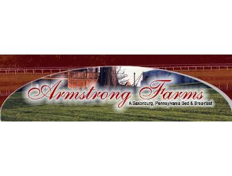Enjoy a two night stay at the Armstong Farms Bed and Breakfast in Western Pennsylvania. With this gift certificate you can plan a weekend escape and relax in one of Pennsylvania's most beautiful rural landscapes.