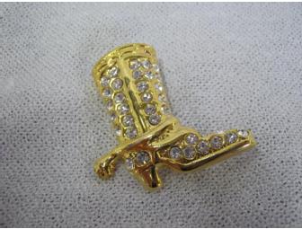Cowboy Boot Pin in gold tone with sparkling crystals