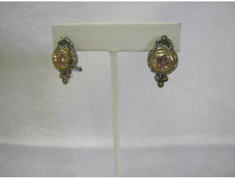 Gorgeous earrings with golden tone cubic zirconia. Sterling Silver with brass tones.