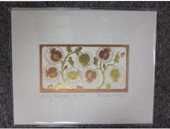 Pomegranate lithograph print, gold/copper foil stamped & embossed, ivory background, beautifully matted, 8x10 inches.