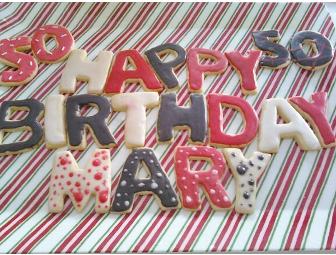 50-100 Personalized sugar cookies for your occasion, (number depends on what you want to spell out). Letters to spell out a message: Happy Birthday, Congratulations, Someone's name or even your sports team. Or simply get shapes instead to celebrate a holiday, wedding, baby etc.