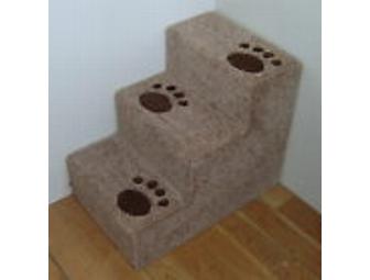 These pet steps are handmade by me one at a time from all new materials and are not only very sturdy but lightweight enough to move around if necessary. They are made from OSB wood, Which is used for the floor decking in multi level apartments and is stronger then plywood. I use screws and non-toxic Glue to assemble the frames and I fasten the carpet not only with staples but I use a non-toxic glue everywhere I staple so the staples will not come loose. These steps will support at least two hundred pounds!