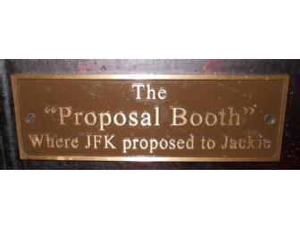 JFK and Jackie frequently dined in Booth #3 at Martin's Tavern (he lived just 2 blocks down N Street at the time). On Wednesday, June 24 1953, having returned from covering the Coronation of Queen Elizabeth for the Washington Times Herald, Jacqueline Bouvier accepted John Kennedy's proposal of marriage. The next day Martin’s was a buzz with staff and customers talking about that “nice young Kennedy congressman” proposing to his girlfriend in their favorite booth. It has been know as "The Proposal Booth" since that day.