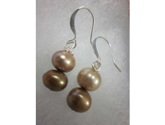 Sand and sable cultured freshwater pearl drops on sterling silver ear wires.