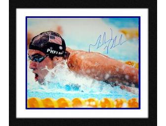 As if winning eight gold medals at the 2008 Olympic Games in Beijing wasn't enough, Michael Phelps also broke seven World Records and one Olympic Record in doing so. Add to these achievements the six gold medals and two bronze medals Phelps took home from the 2004 Olympic Games in Athens, and you have the greatest Olympian of all-time. Phelps has also said he will return and compete at the 2012 Olympic Games in London, where he will likely add to his record fourteen gold medals. A four-time winner of the World Swimmer of the Year Award, Michael Phelps has hand-signed this photograph, which depicts the Olympic champion in the 100m Butterfly race at the 2008 Summer Olympic Games in Beijing, China. This piece comes professionally double matted and framed, and with a lifetime-guaranteed Certificate of Authenticity. Also included is a photograph of Michael actually signing this item!