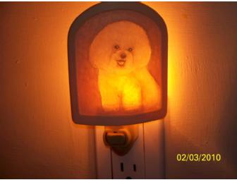 This night light is really beautiful when it is illuminated in the dark. It is made of out resin bonded with marble. The original artwork is copyrighted by Greg Dixon. The overall measurements are 5.5"H x 3.75"W. I liked mine so much that I bought another one for this auction!